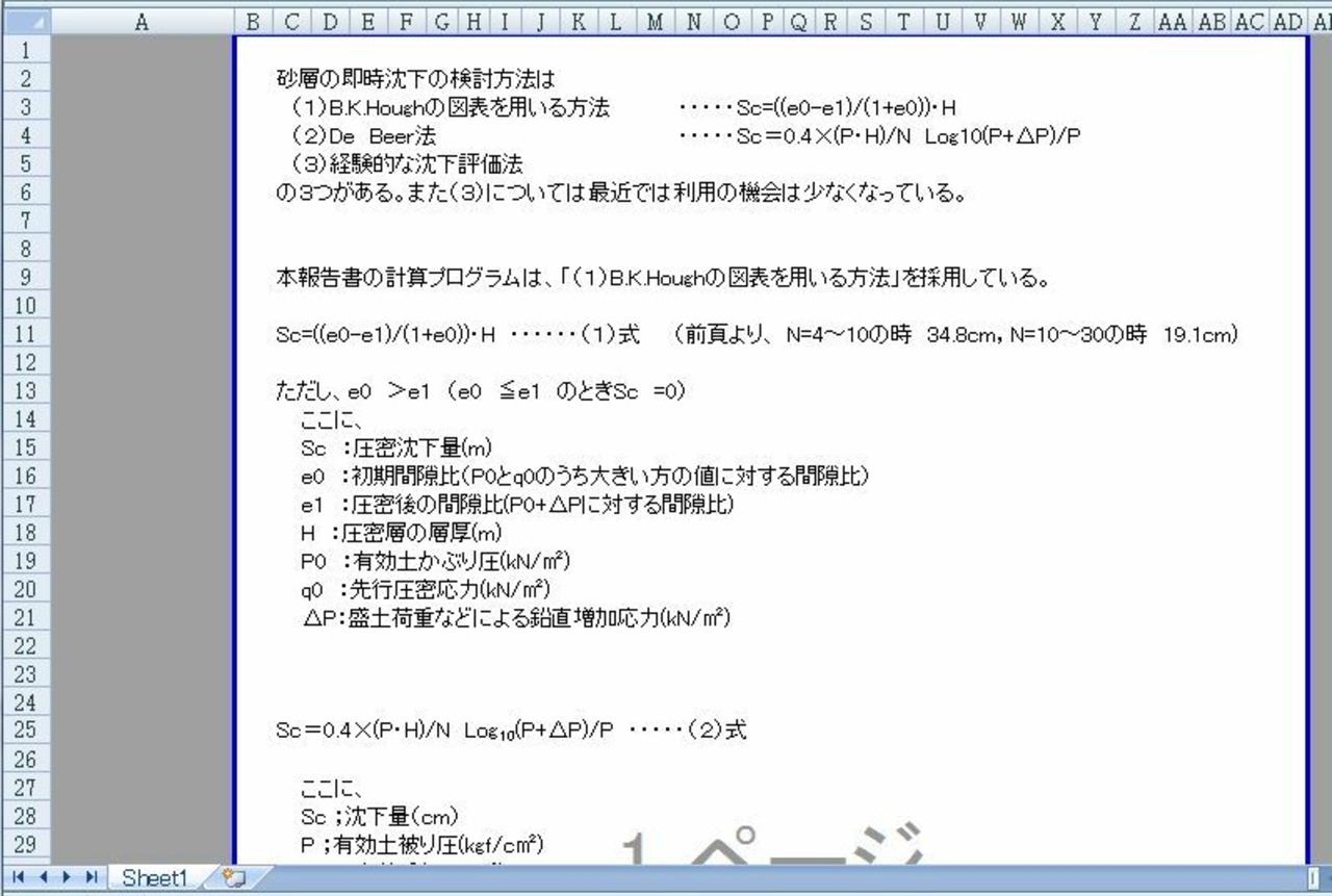 砂層の即時沈下 エクセル ダウンロード